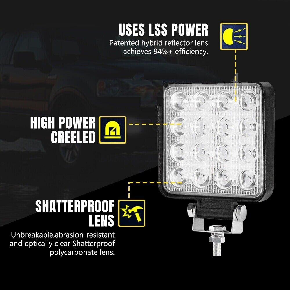 Lightfox 2x 4inch Osram Square LED Work Lights Flood Reverse Ute Truck 12V 24V