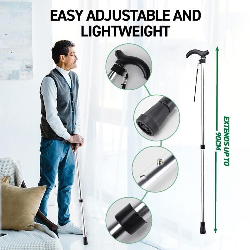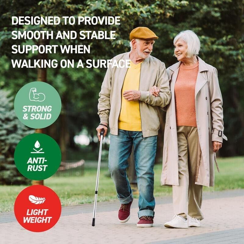 Lightweight Adjustable Walking Stick Aluminium Travel Cane Non Slip Compact