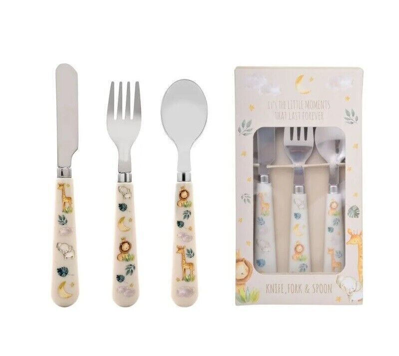 Little Moments Cutlery Set Kids Toddler Knife Fork Spoon Lion Elephant Giraffe