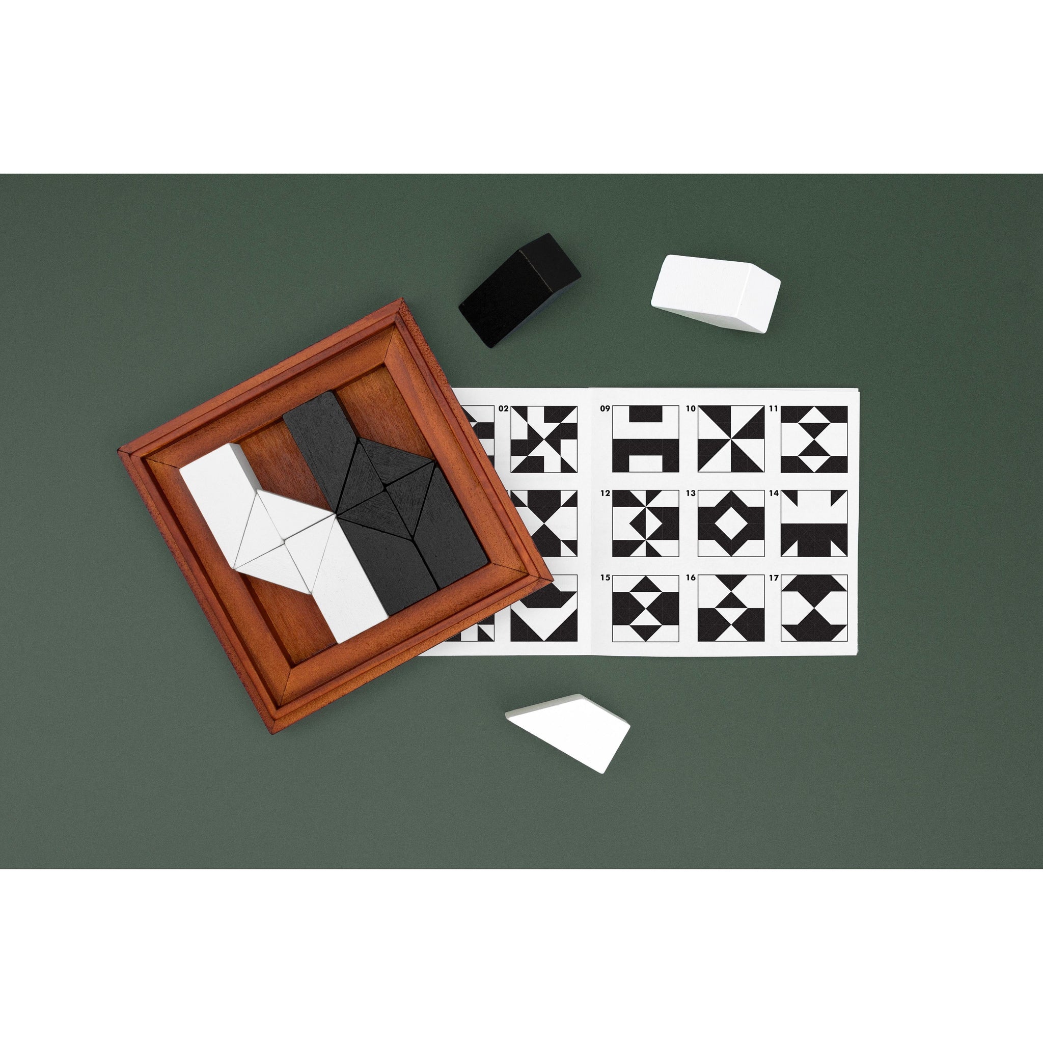 This deluxe puzzle set includes 16 black & white abstract wooden pieces and comes with instructions on how to play, puzzles to solve and solutions.