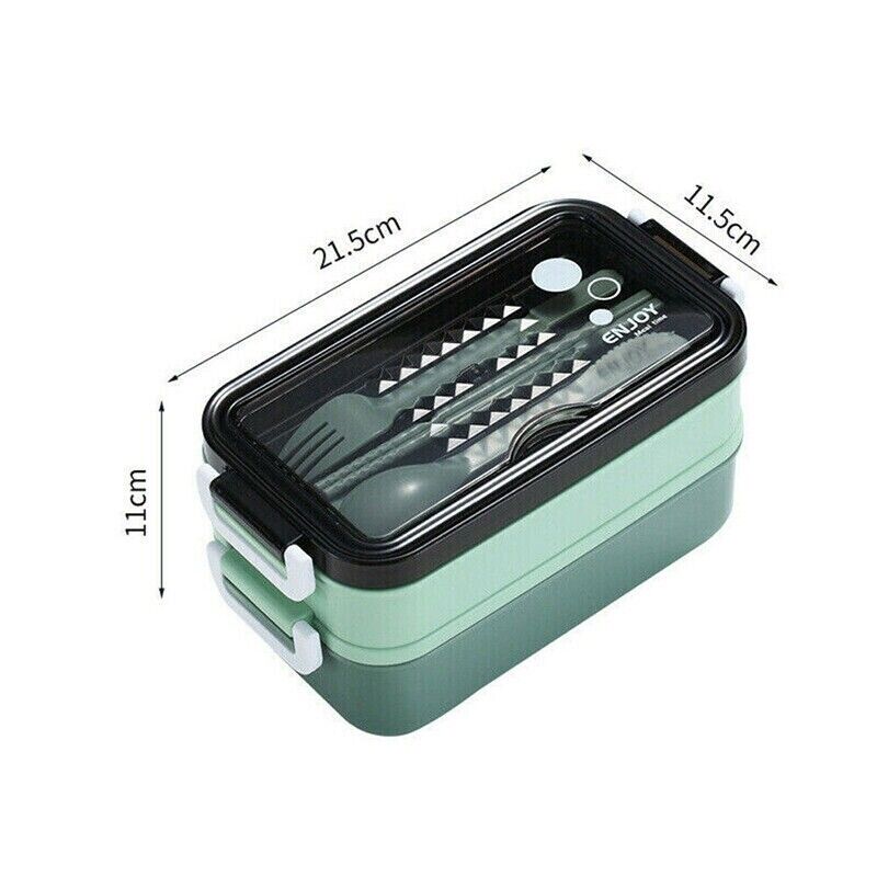 Lunch Box Food Containers Microwave Stainless Portable Dinnerware-Green