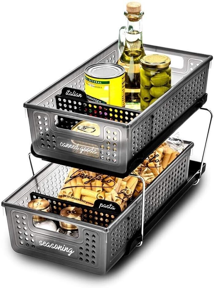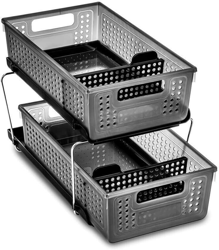 Madesmart 2-Tier Plastic Multipurpose Organizer with Divided Slide-Out Storage