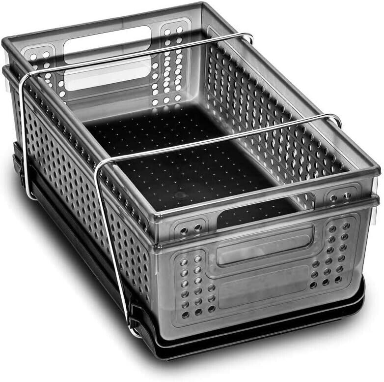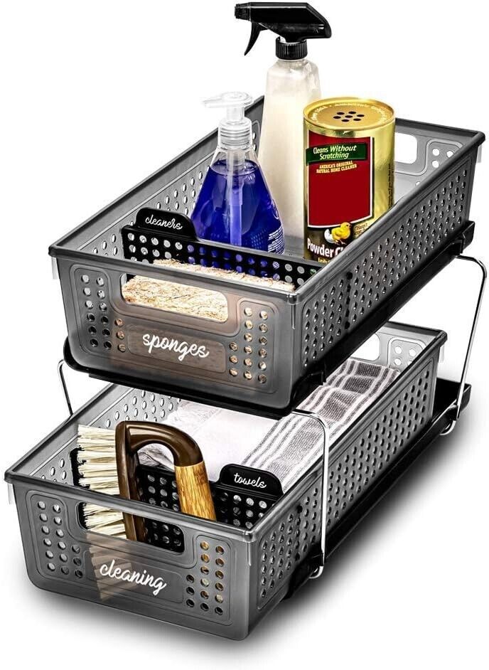 Madesmart 2 Level Storage With Divider Carbon makes organization easy, working as a handy and cost-effective alternative to built-in shelves, created with the bathroom in mind. The storage includes removable dry-erase dividers and two bins to help arrange favorite daily bathroom essentials, with a pull-out function keeping every item within reach.