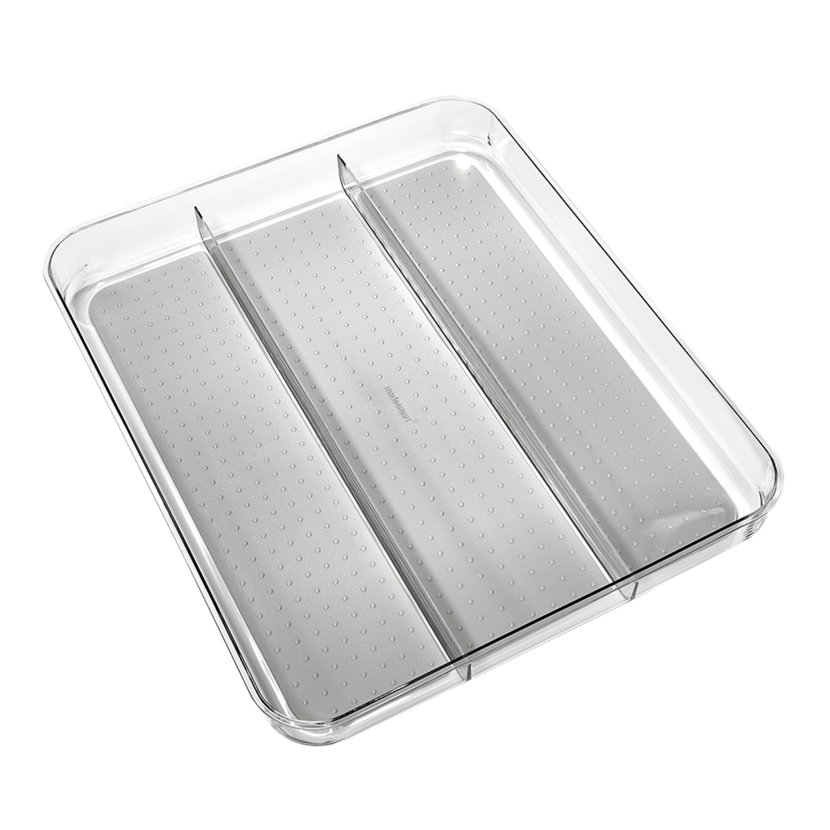 Madesmart Clear Soft Grip Utensil Tray 3 Compartment Grey Lightweight Rubber