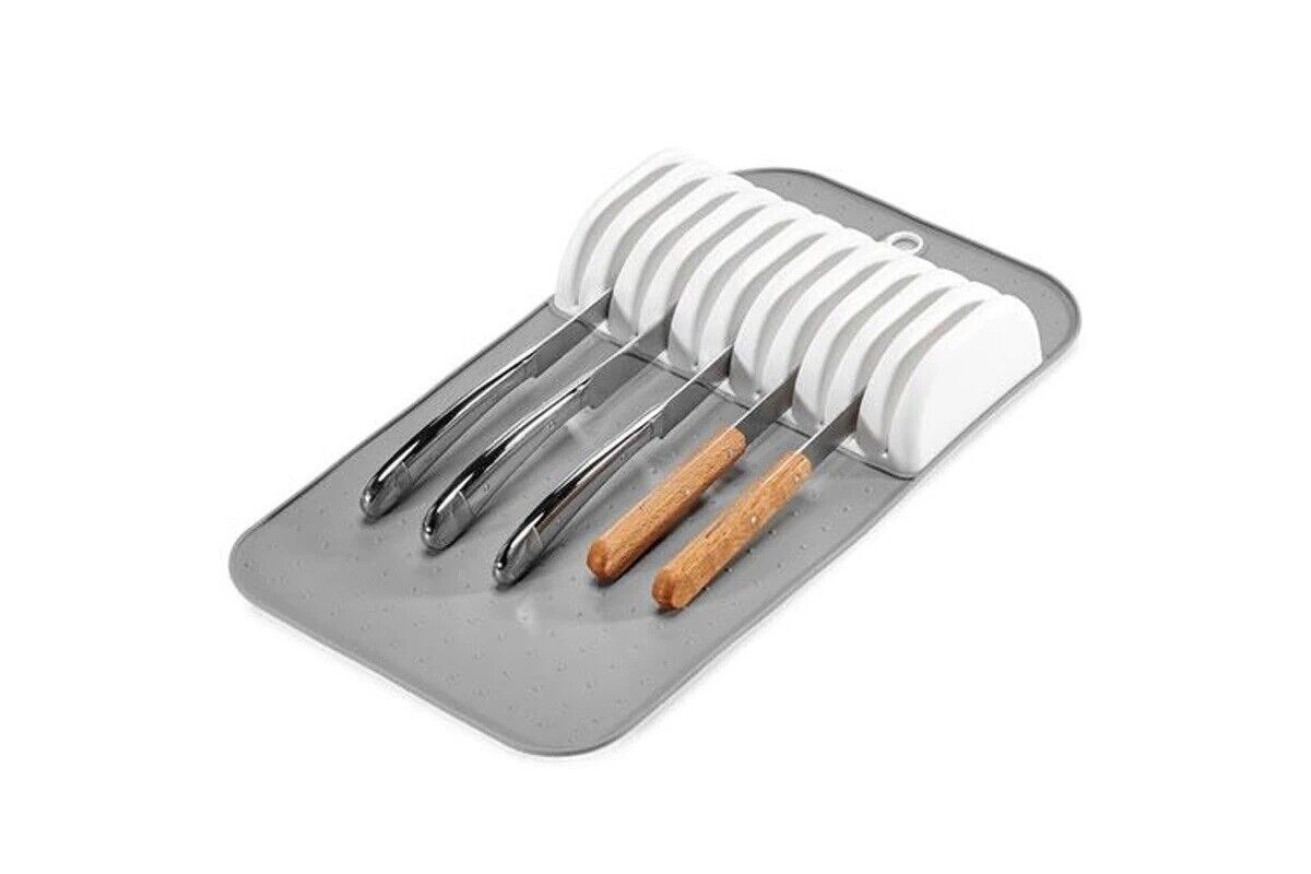 Now you can keep you knives perfectly organised, thanks to the Large In-Drawer Knife Mat. Crafted from durable plastic, this small organiser fits perfectly inside most drawers and includes a non-slip base to keep your cutting gear steady. With eleven cushioned slots for storage, your knives will protected from any blade damage, thanks to Madesmart.