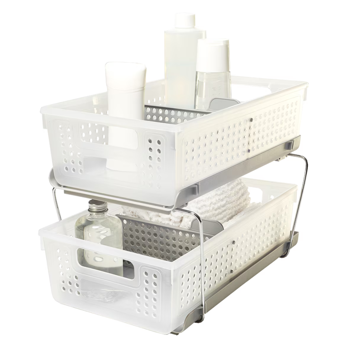The Two Level Storage with Dividers by Madesmart makes organisation easy, working as a handy and cost effective alternative to built-in shelves, created with the bathroom in mind.
