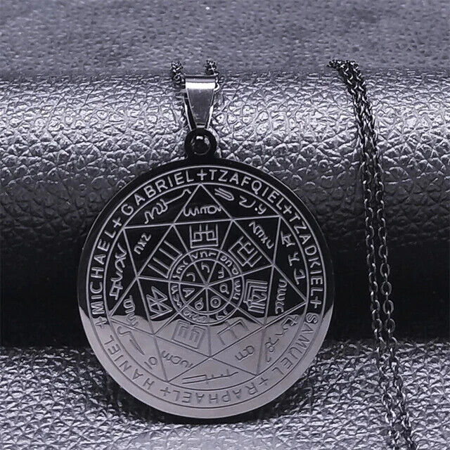 - Magic Mascot Amulet Lucky Protection Supernatural Talisman Necklace Seal of Solomon Seven Archangel Necklace Stainless Steel Saint Michael Pendant Jewelry Engraving for Man Amulet Gifts.
