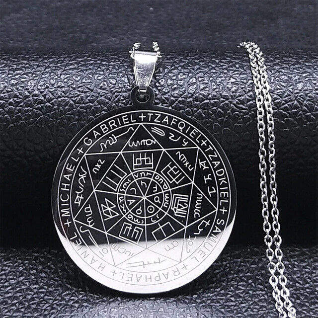 - Magic Mascot Amulet Lucky Protection Supernatural Talisman Necklace Seal of Solomon Seven Archangel Necklace Stainless Steel Saint Michael Pendant Jewelry Engraving for Man Amulet Gifts.