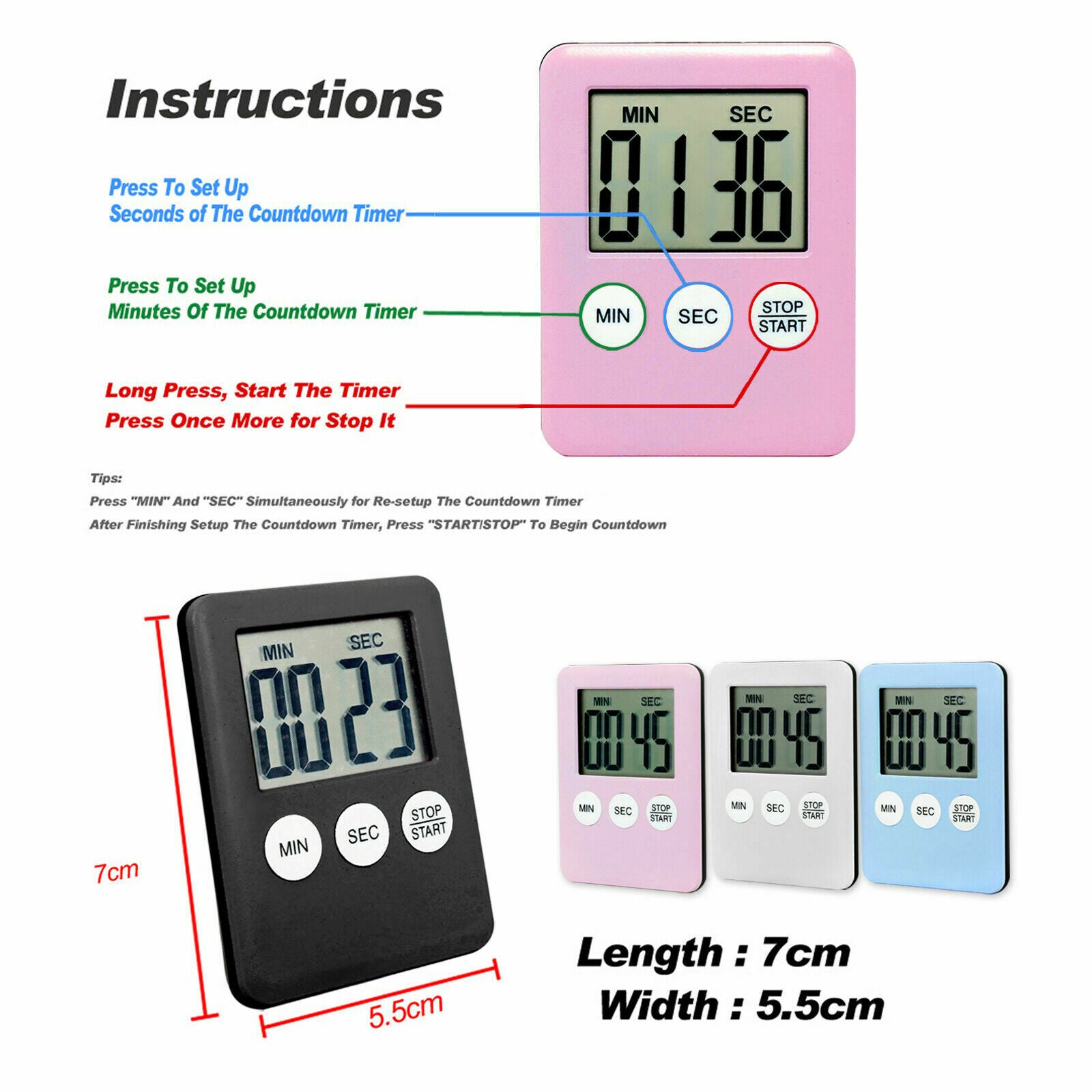 Magnetic LCD Digital Kitchen Timer Countdown Town 99 Minute Electronic Blue