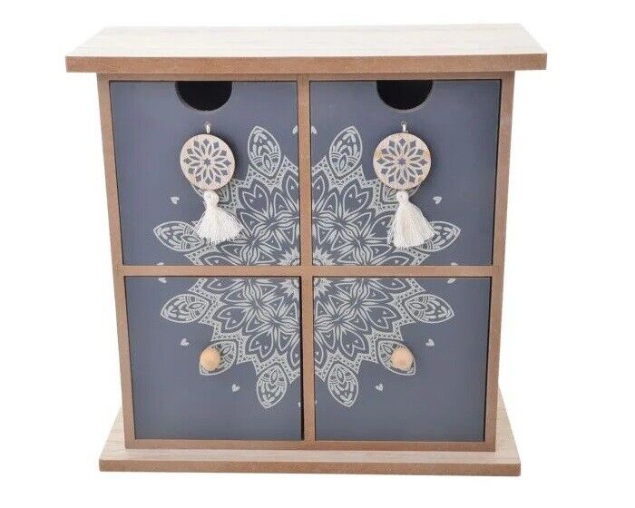 Mandala Boho 4 Drawer Wooden Organizer Jewellery Mini Drawer Home Decoration