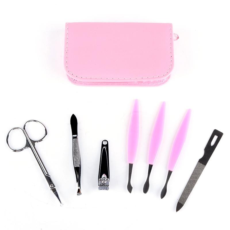 Manicure Set Travel Pack Compact 7 pieces Pink Nail Grooming Clippers pedicure