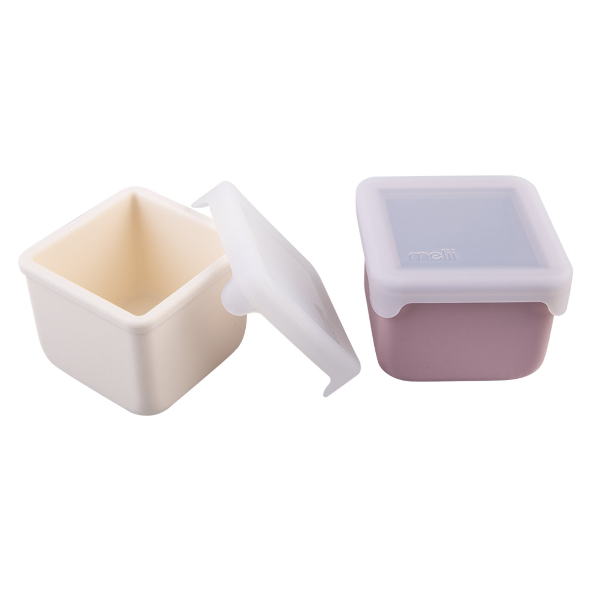 Package Includes: Set of 2 Melii Luxe Silicone Snack Containers Pink Ivory