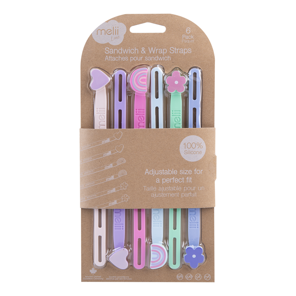 Melii Luxe Silicone Wrap Bands Wraps Burritos Rolls Heart Rainbow Flower