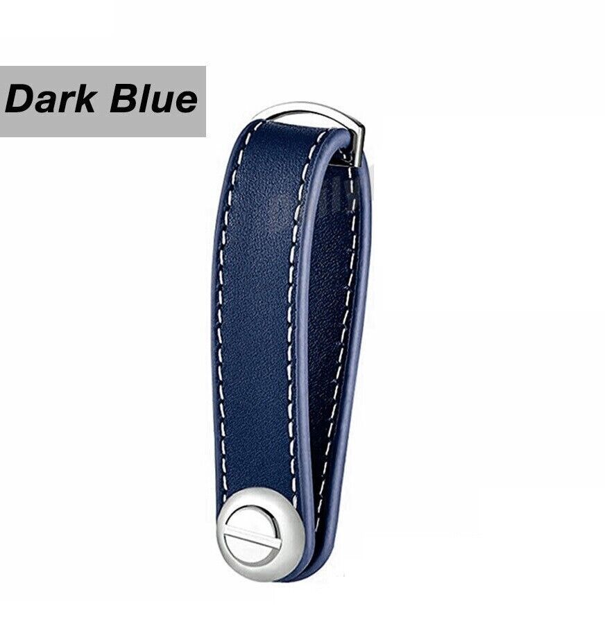 Men Leather Smart Key Holder Organizer Clip Compact Folder Keychain Dark Blue