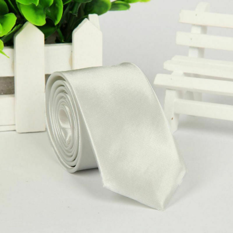 Mens Skinny Tie Plain Wedding Slim Necktie Formal Casual Narrow Party White