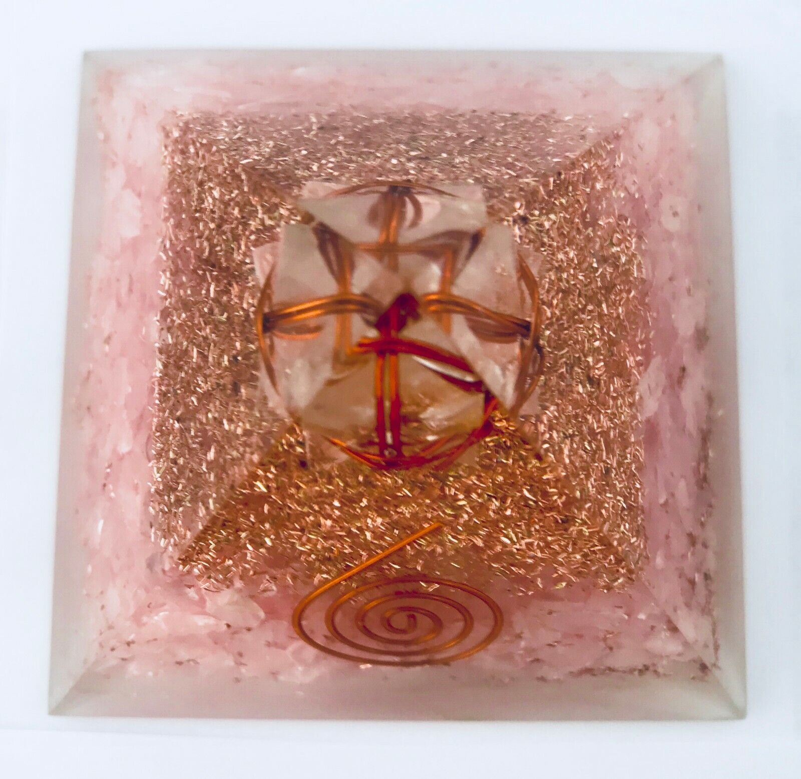 Merkabah Orgonite Pyramid Rose Quartz Crystal
