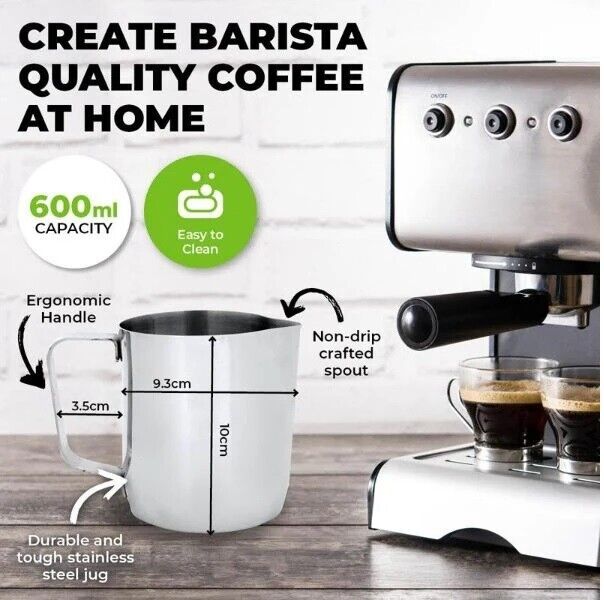 Milk Frothing Espresso Coffee Pitcher Stainless Steel Jug Home Master 600ml