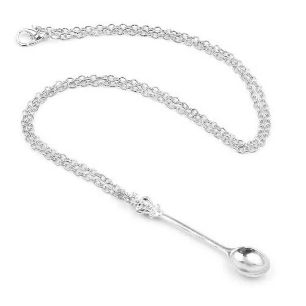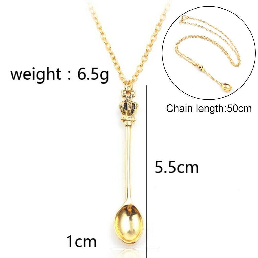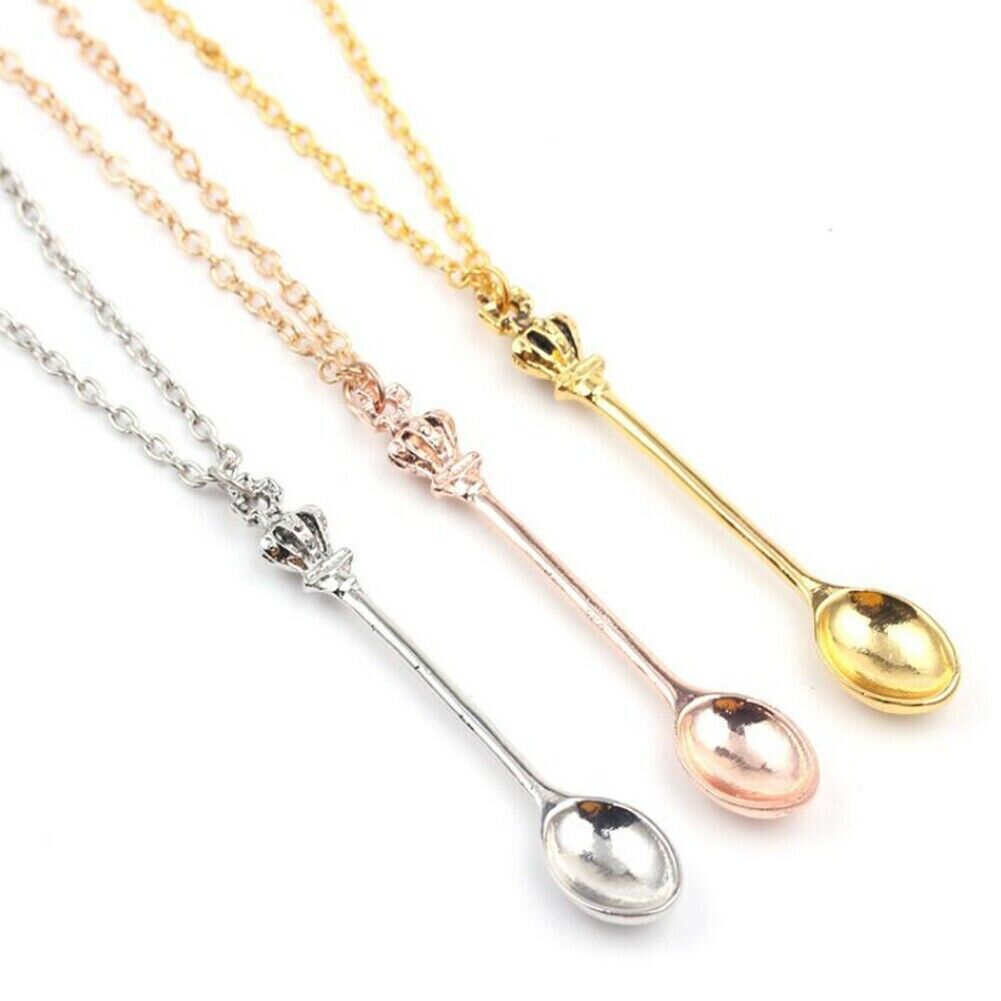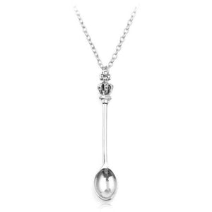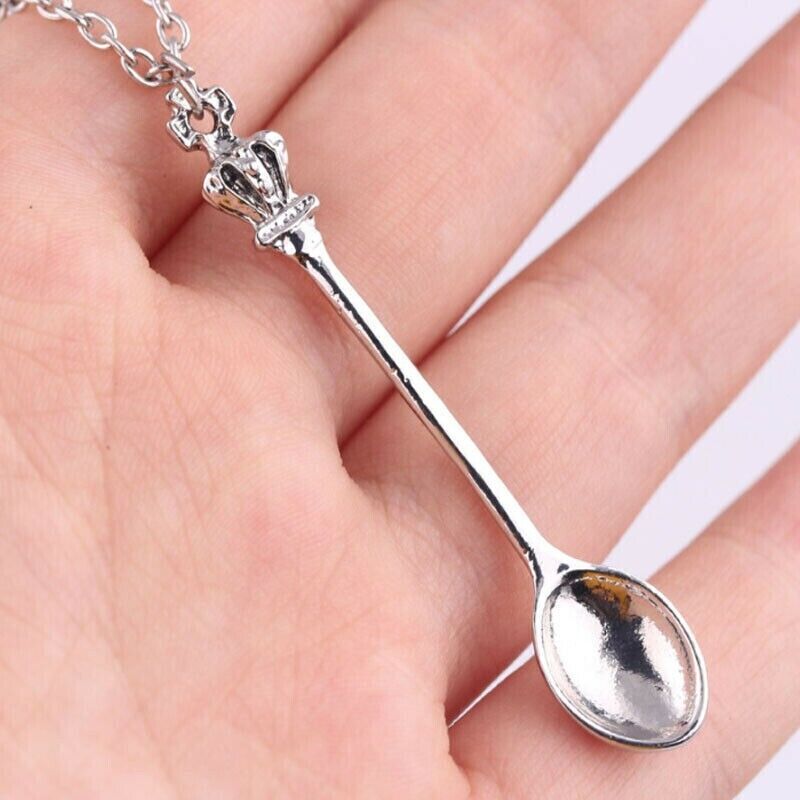 Mini Crown Spoon Necklace Pendant Charm Festival Cutlery Royal Tea - Silver