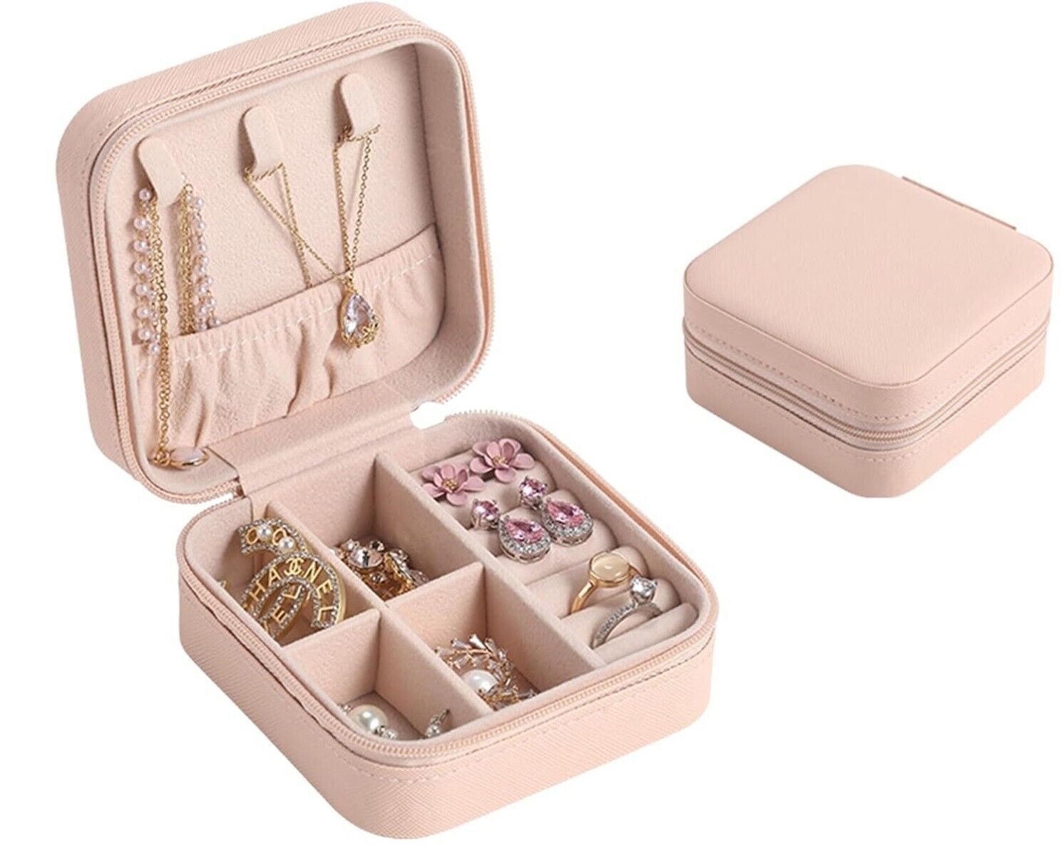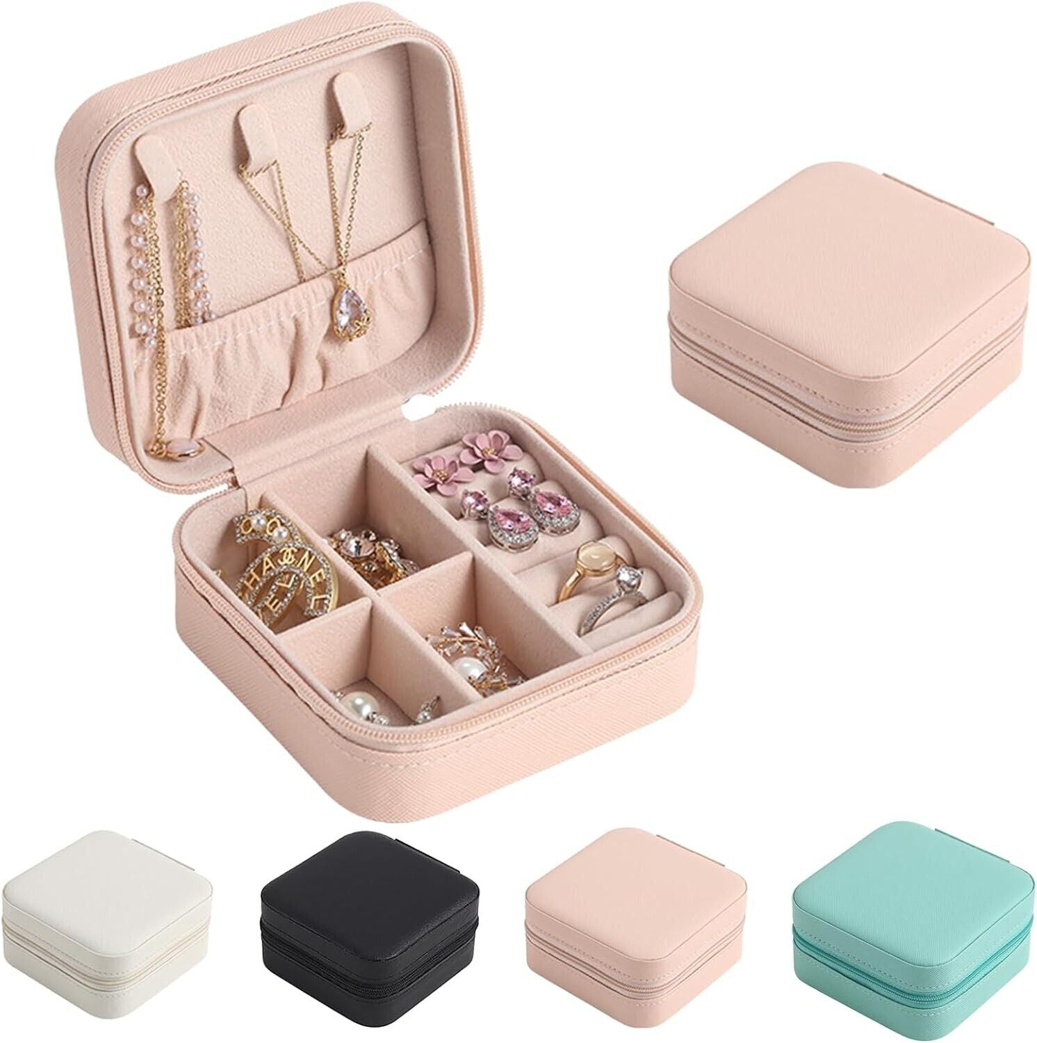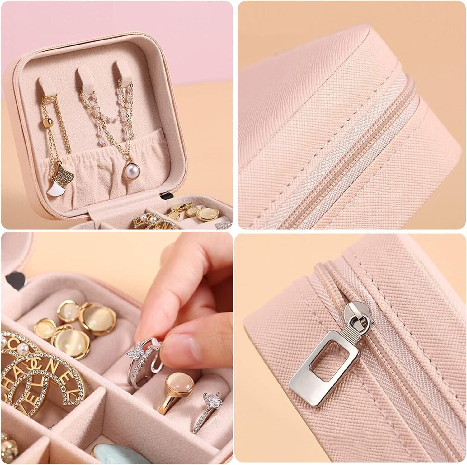 Mini Small Portable Travel Jewelry Organiser Box with Zipper Storage Case - PINK