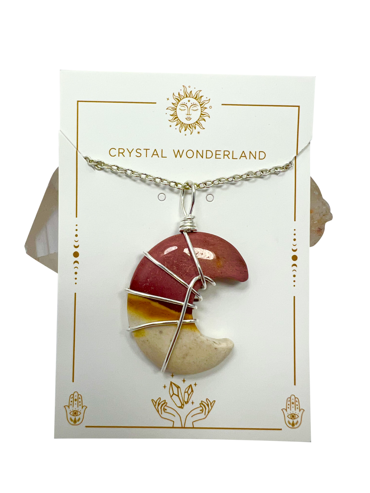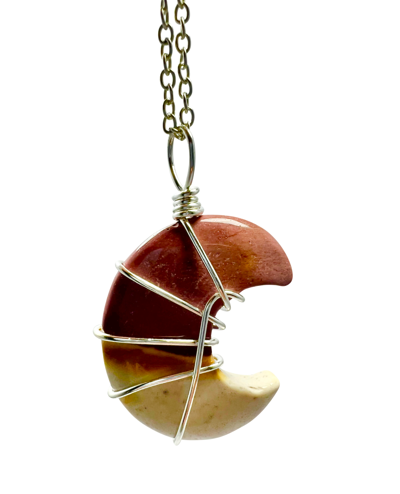 Mookaite Half Moon Shape Pendant Necklace Silver Healing Polished Tumbled