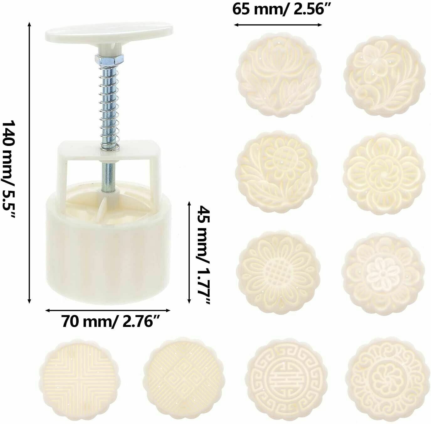 Package Includes: 1 Set Moon Cake Mould (includes 1 mold and 10 stamps)