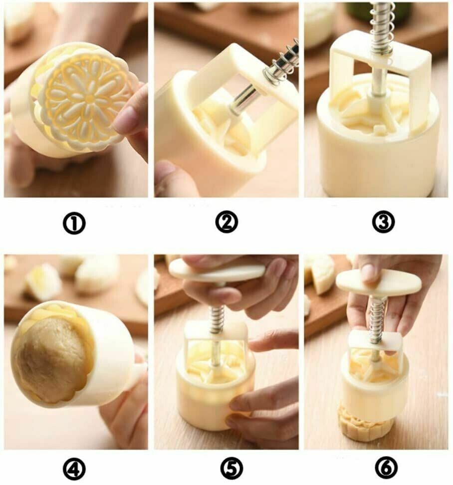 Moon Cake Hand Pressure Mold Maker Pastry Homemake DIY Flower Stamps Mould