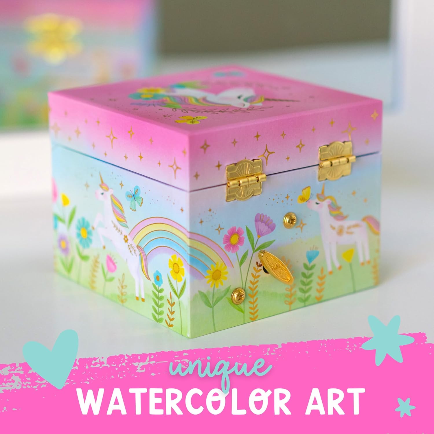 Fine Craftsmanship - Made with sturdy pine fiberboard & tested for safety, this jewellery box for kids is built to last. The spinning unicorn music box for girls complies with all CPSIA, ASTM, and EN71 guidelines ensuring the wellbeing of any child