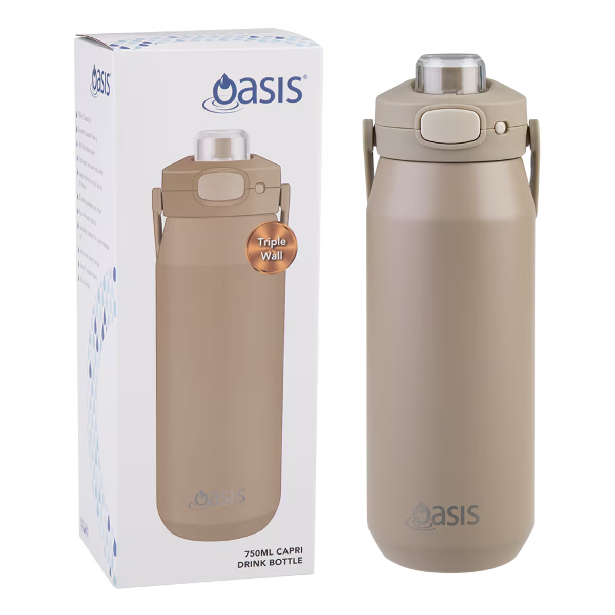 Oasis Capri Ceramic Lined Stainless Steel Triple Wall Drink Bottle 750ml Latte