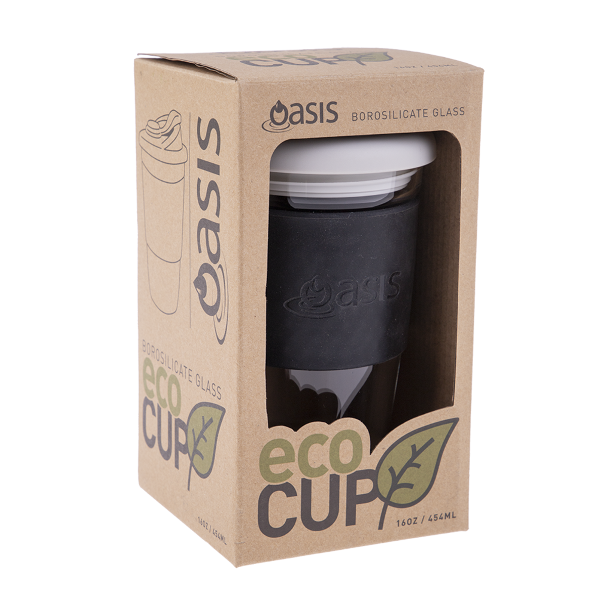 Package Includes 1x Oasis Borosilicate Glass Eco Cup 454ml - Black
