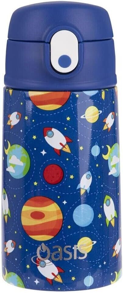Oasis Double Wall Insulated Kids 400ml Drink Bottle Stainless Steel -Outer Space