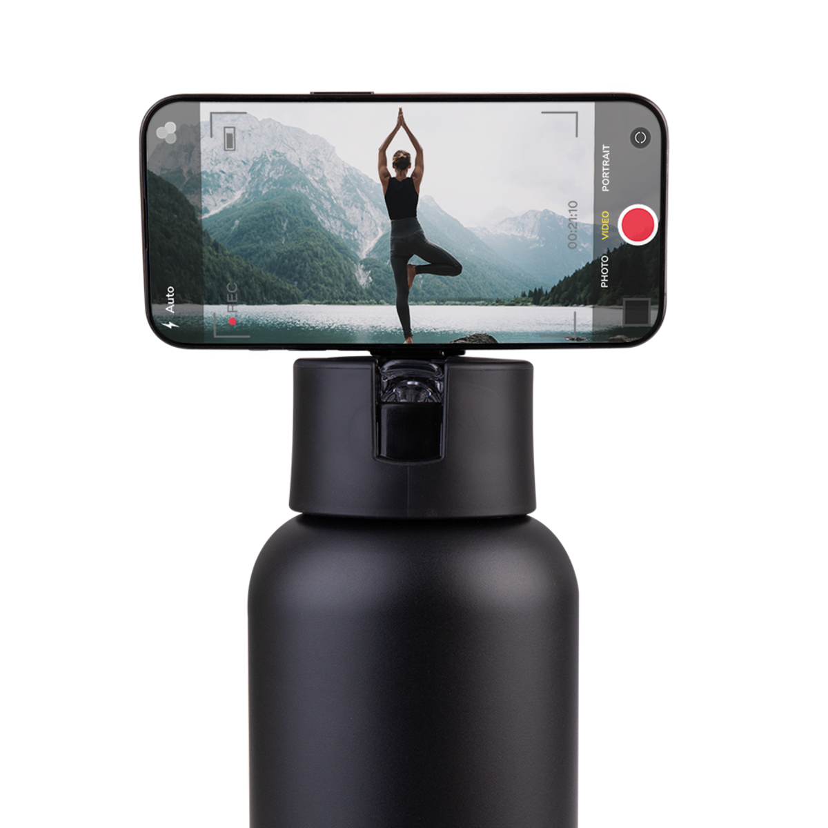 The sturdy mag-grip mount, allows you to easily connect your compatible phone, device, or accessory for a portable tripod, anywhere; or use it as a carry handle to take your Moda Drink Bottle everywhere – perfect for any adventure.