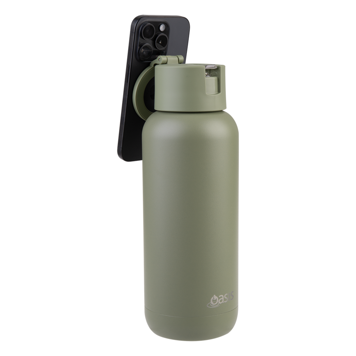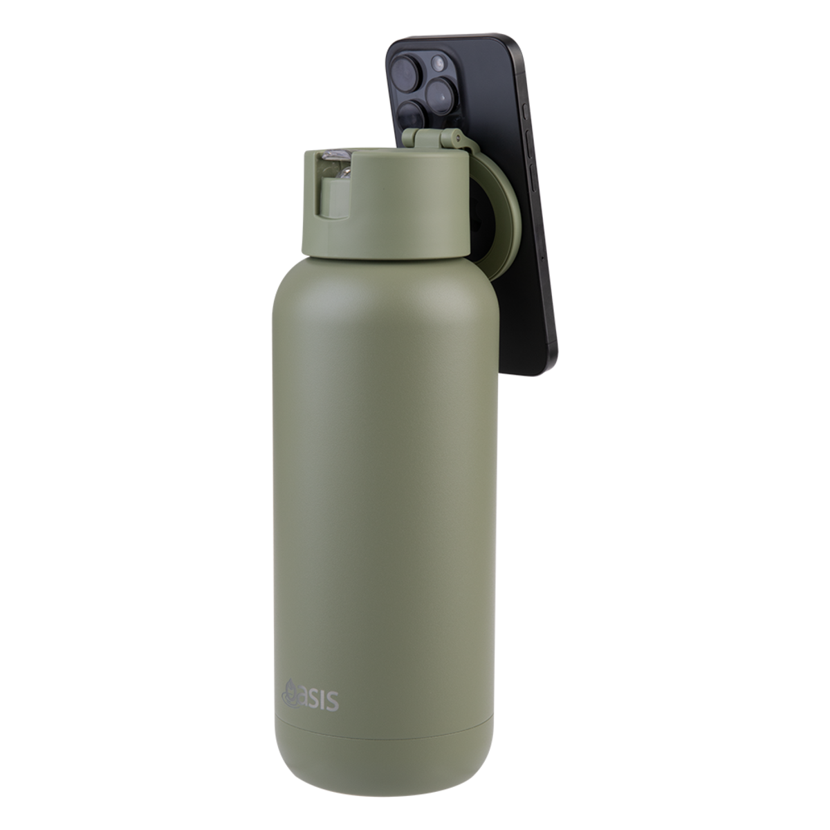 Oasis Mag-Grip Stainless Steel Moda Drink Bottle 1L Phone Selfie - Olive Green