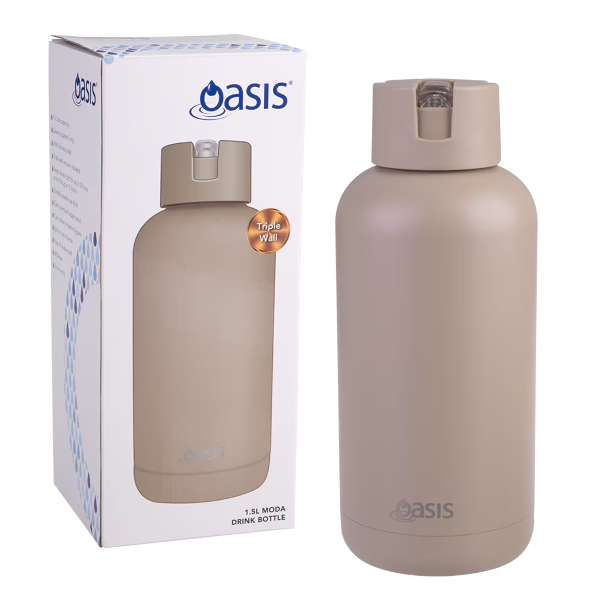 Oasis Moda Ceramic Lined Stainless Steel Triple Wall Drink Bottle 1.5L Latte