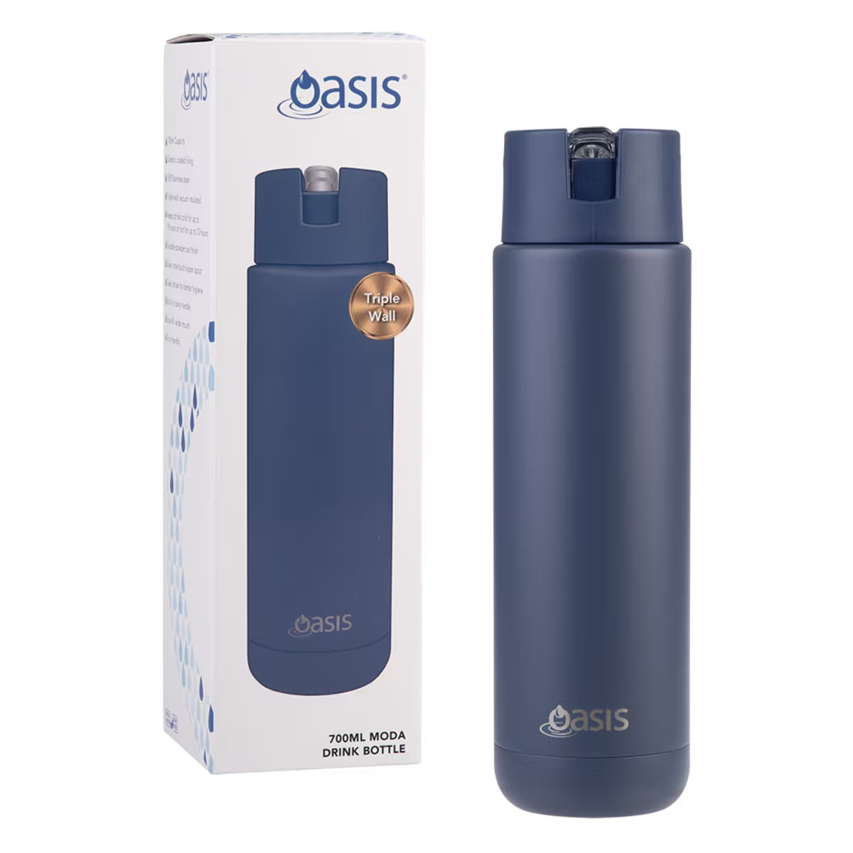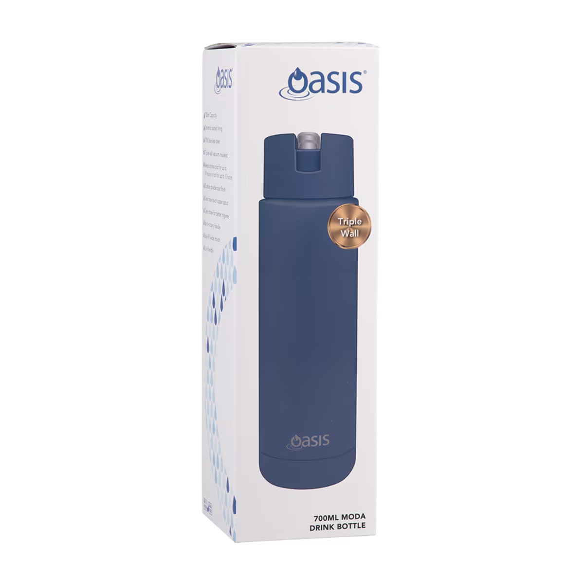 Oasis Moda Ceramic Lined Stainless Steel Wall Drink Bottle 700ml Indigo