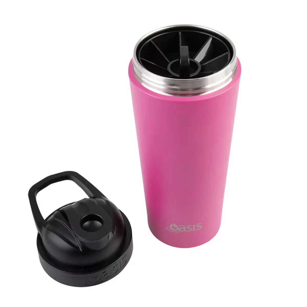 The Oasis Stainless Steel Double Wall Insulated Protein Shaker in Pink is a must-have for all occasions.