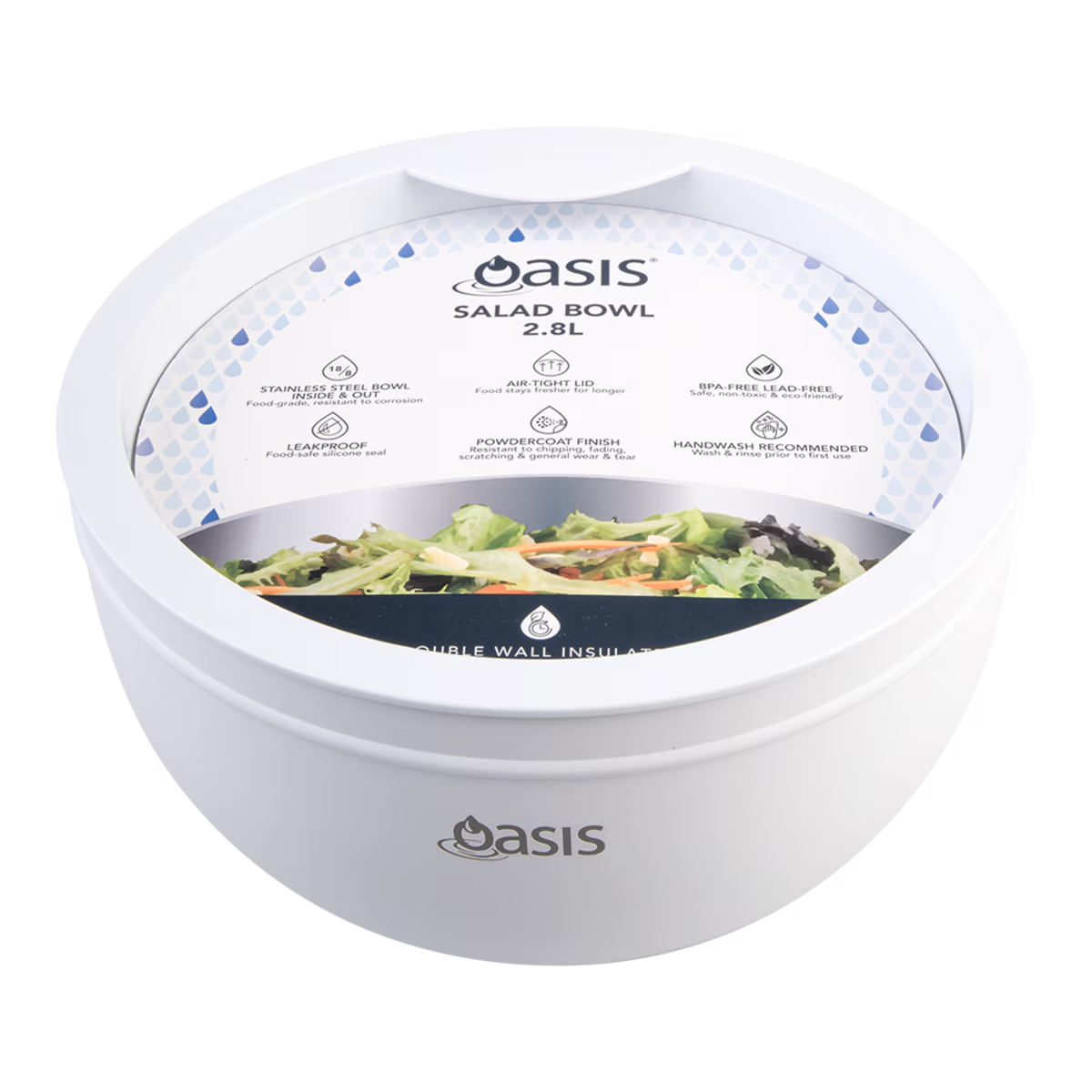 Package Includes: Oasis Stainless Steel Double Wall Salad Bowl 2.8L White