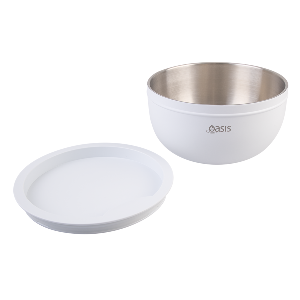 Oasis Stainless Steel Double Wall Salad Bowl w/ Lid 2.8L White