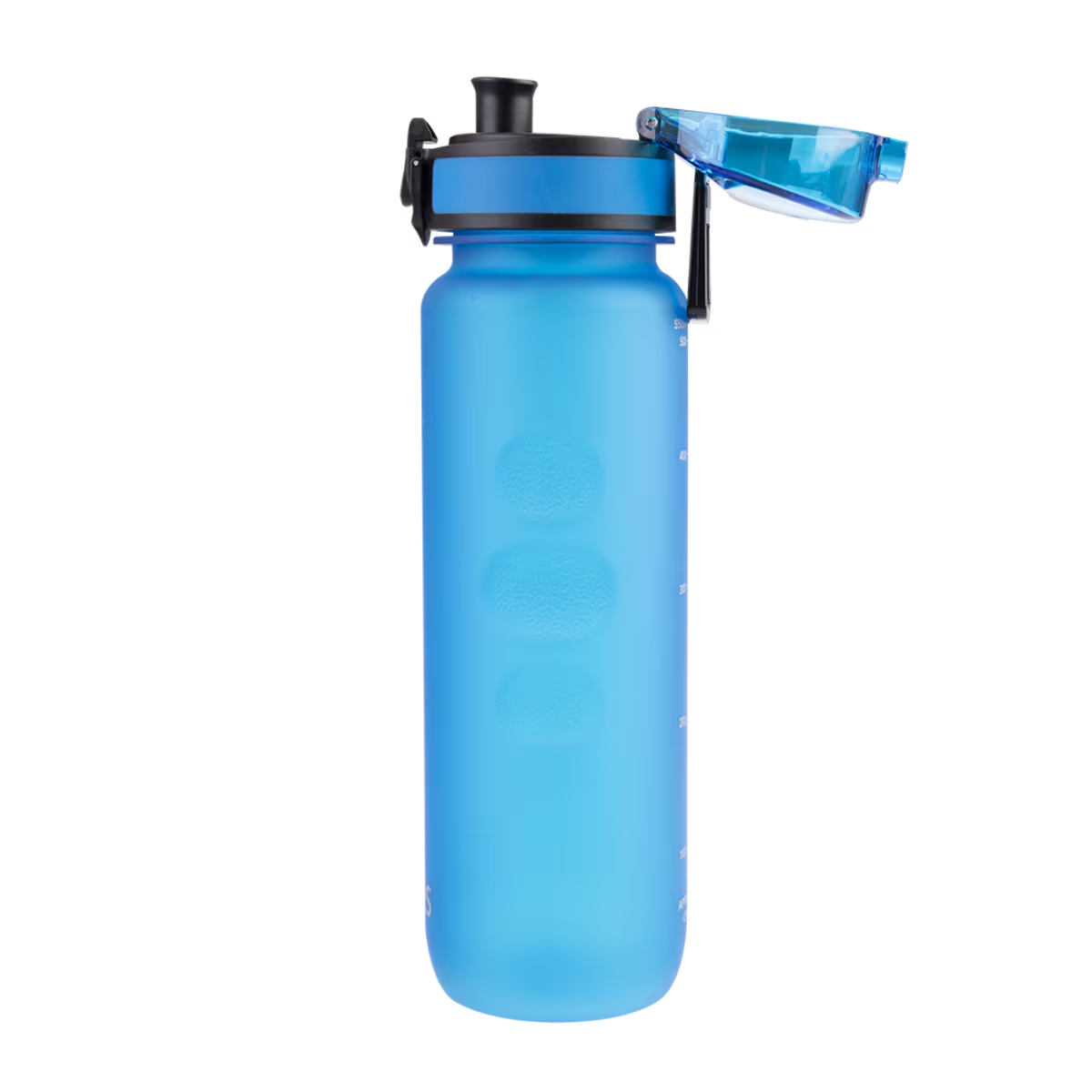 This sports bottle is easy to clean and features a leak-proof, one-touch open pour-through lid, carry clip, ergonomic textured bottle grip, and incremental capacity level markers to help you reach your daily hydration goals.