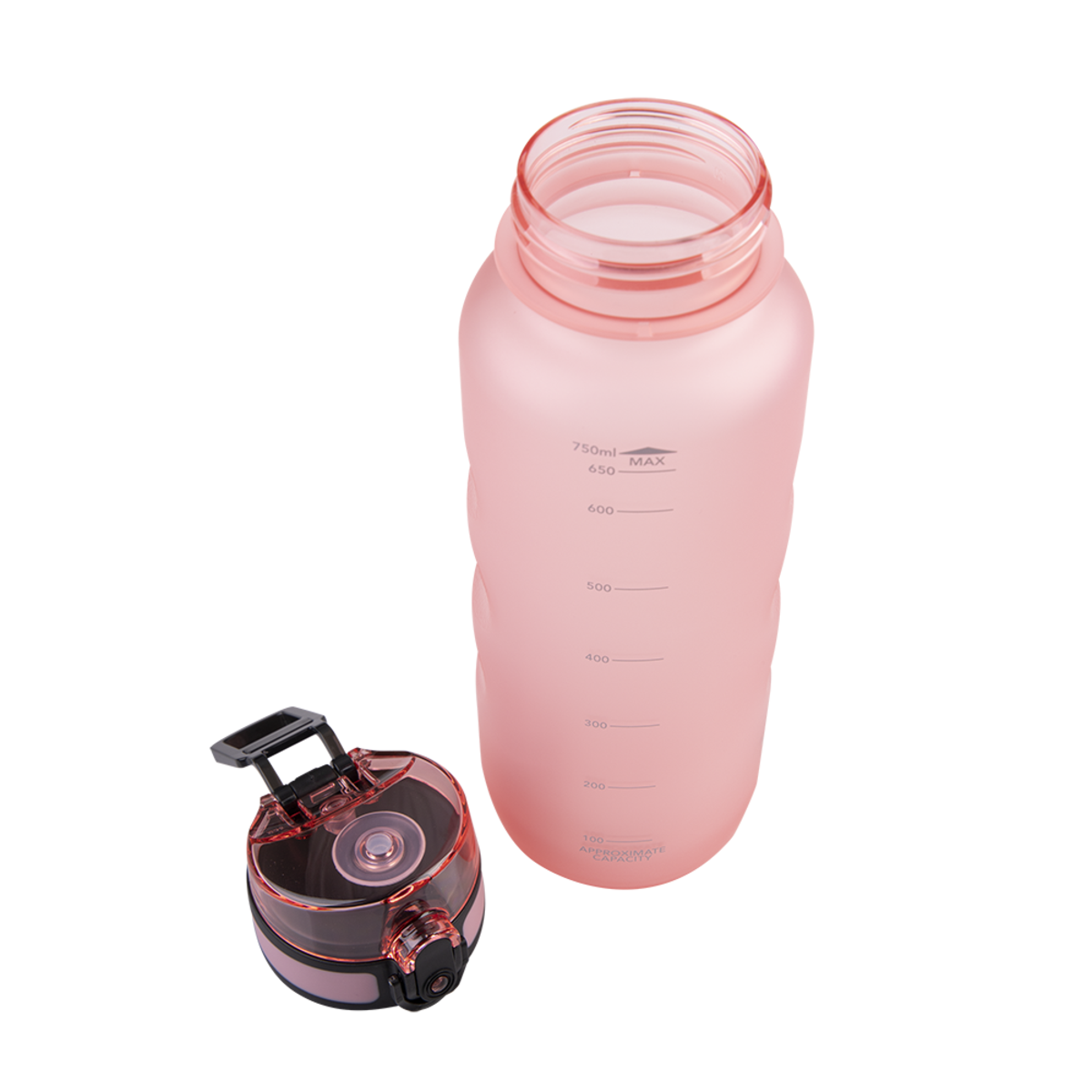 This sports bottle is easy to clean and features a leak-proof, one-touch open pour-through lid, carry clip, ergonomic textured bottle grip, and incremental capacity level markers to help you reach your daily hydration goals.