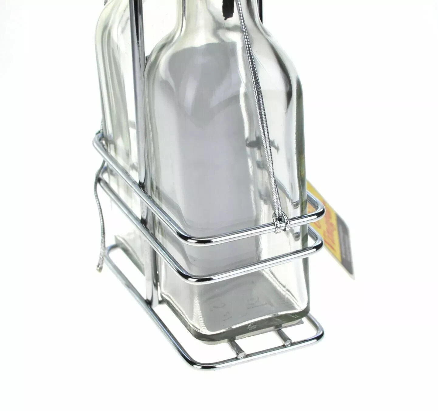 Oil and Vinegar Ser with Stand Olive Oil Glass Bottle Rack Kitchen Organiser