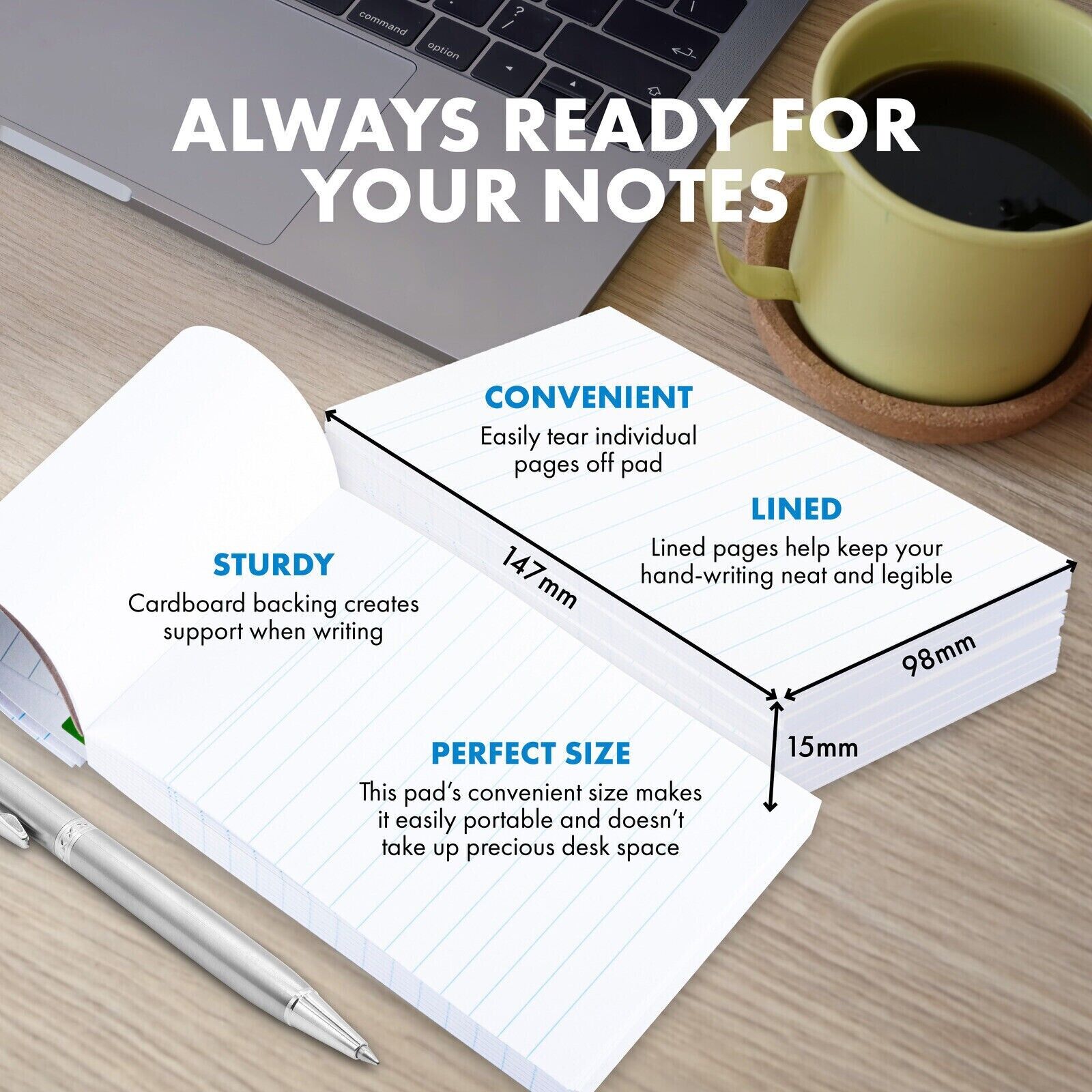 Perfect for home, office, school, business are these Lined Note Pads. Use for note taking, brainstorming, writing letters, these pads are convenient and ready for your notes.