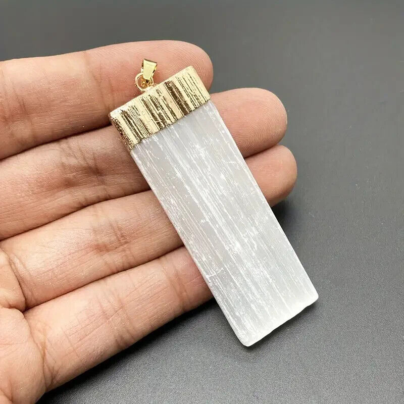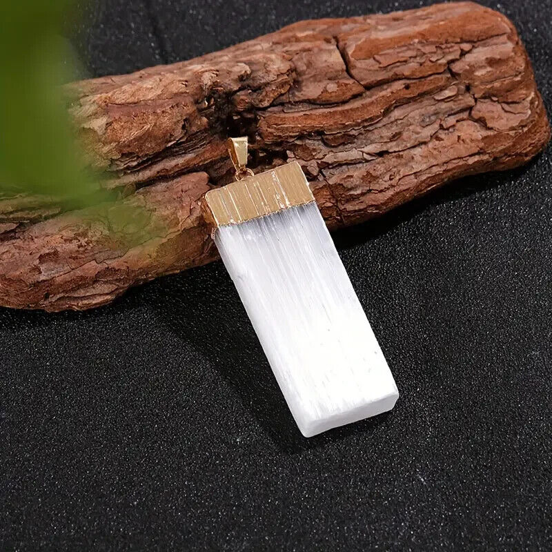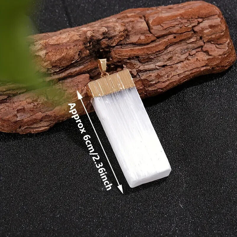 Pendant White Gypsum Crystal Necklace Natural Selenite Cleansing Reiki Golden