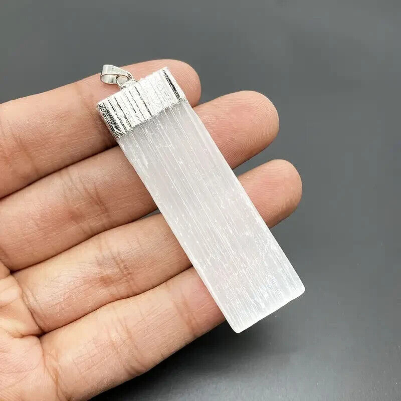 Natural Selenite Pendant Silvery: White Gypsum Crystal Necklace for Cleansing, Reiki, Meditation, Fengshui, and Chakra Balancing - Suitable for Men and Women