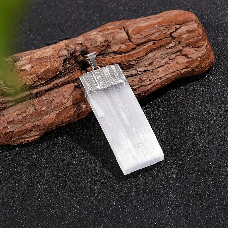 Pendant White Gypsum Crystal Necklace Natural Selenite Cleansing Reiki Silvery