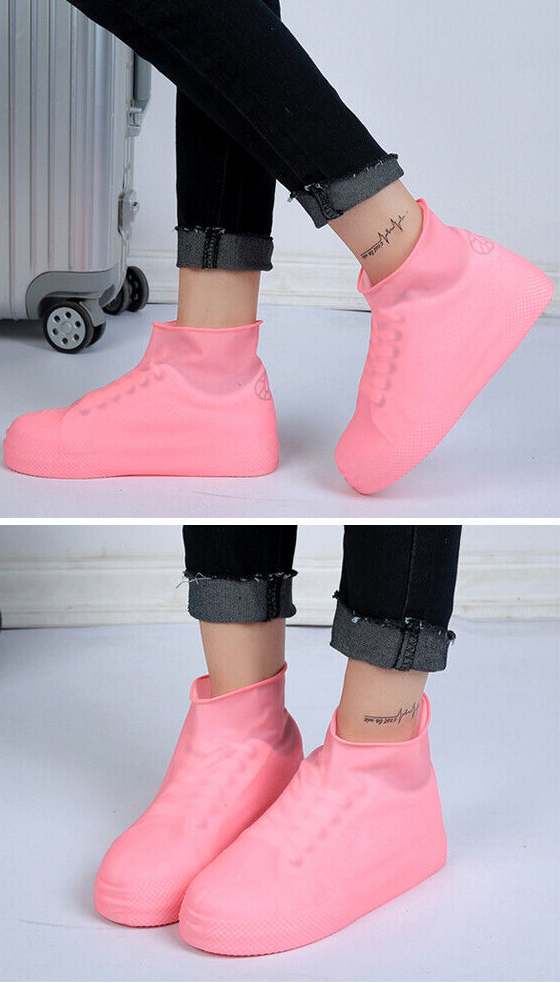 Pink Waterproof Silicone Shoe Cover Protective Water Rubber Boot Overshoe L