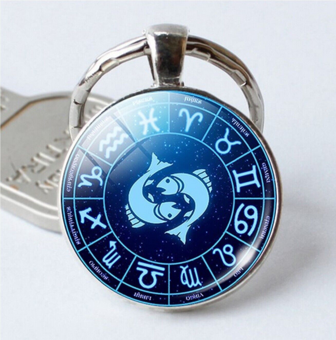 Pisces Keyring Constellation Keychain Glass Pendant Silver Plated