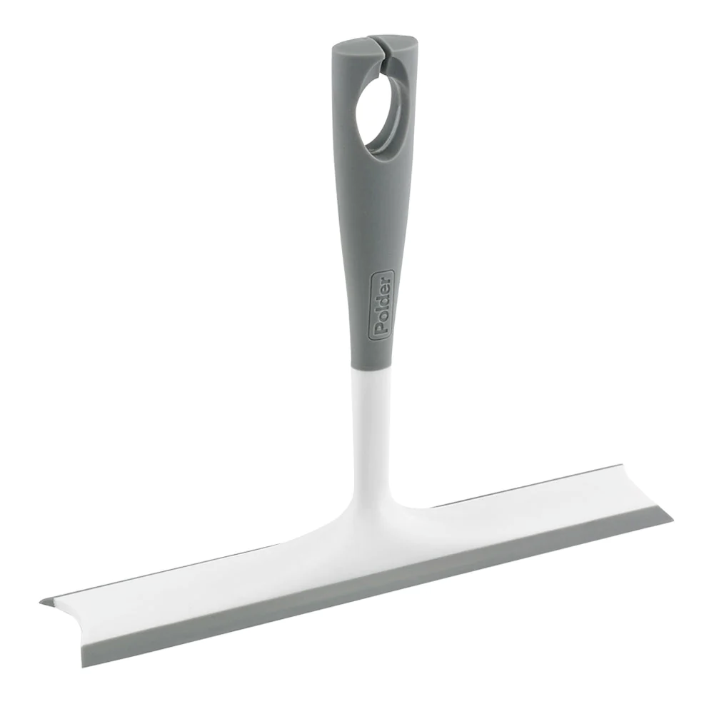 For the past 40 years Polder has been building on our reputation as a leading brand, supplying consumers with well designed, high quality home goods. the core aspiration of the brand is to offer products that make daily tasks easier while offering quality, value and elegant design. we create items that employ only worthy innovation and user centered benefits as the hallmarks. As a company we are passionate about products, design, and the evolution of how people use items in the home every day. At Polder, life meets style. The Polder dual action squeegee is the perfect all-purpose squeegee for wiping shower doors & walls, tiles, windows, car windshield and home windows. The squeegee is designed with two unique angled blades and a comfort grip handle to lessen the need to bend and reach while cleaning.