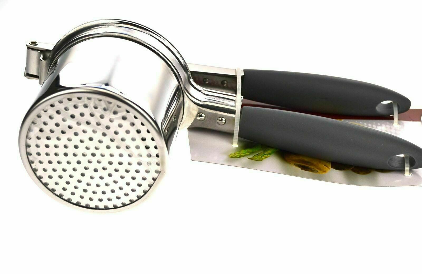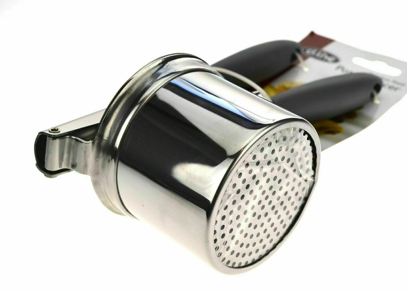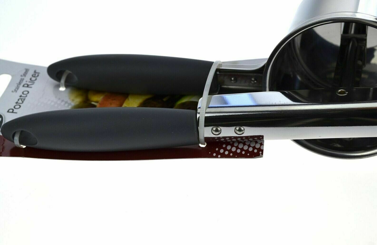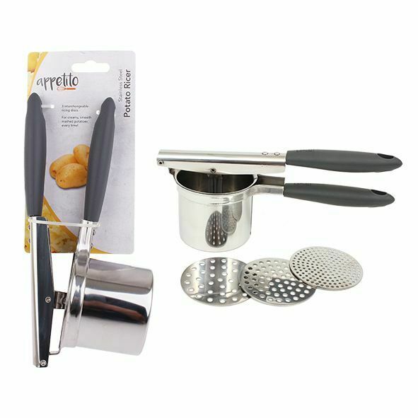 The Appetito Potato Ricer with stainless steel and chrome construction comes with two interchangeable discs for fine and course settings.