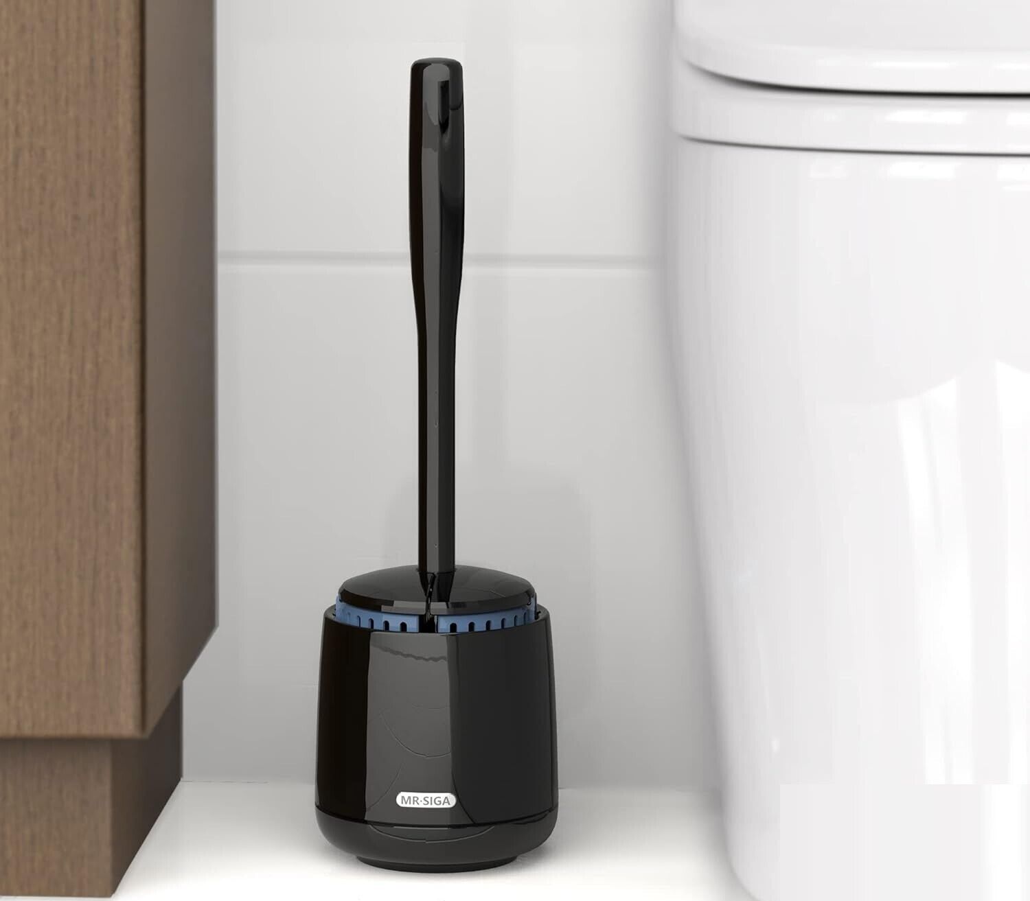 Lid opens automatically when toilet brush is lifted, and bottom ventilation allows for quick evaporation; Lid closes simultaneously when you place toilet brush back into holder, and the upper ventilation starts working which provides hygienic air dry. Compact space saving design keeps your toilet brush hidden and offers a sanitary storage.