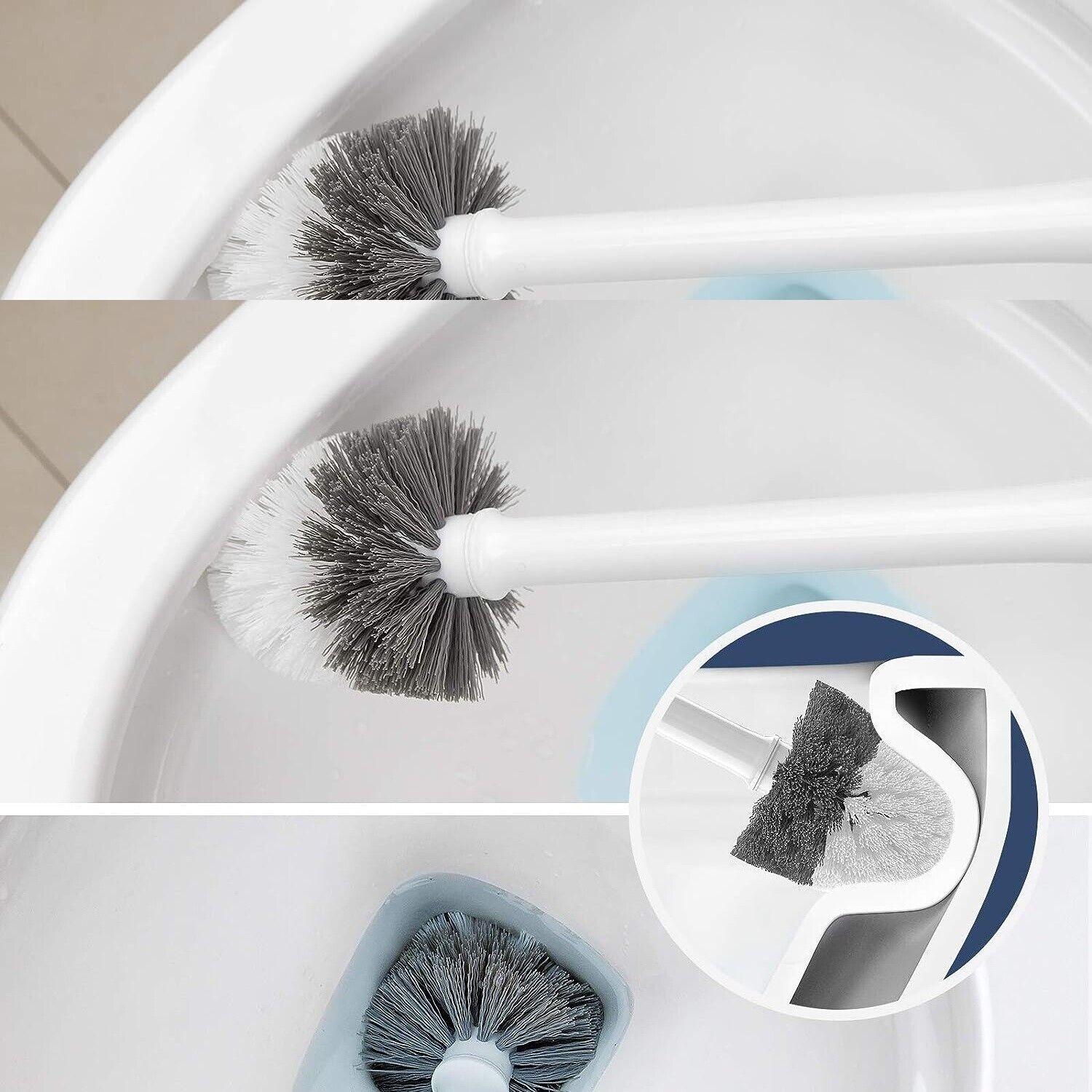Strong bristles are not easy to get deformed which remove stains easily, the dense bristles offer thorough and deep cleaning for under-rim area and those hard-to-reach corners. Water easily drips off bristles into bottom of holder, brings you a refreshing cleaning experience. For replacement brush head, please refer to ASIN B08YRRDKDQ.